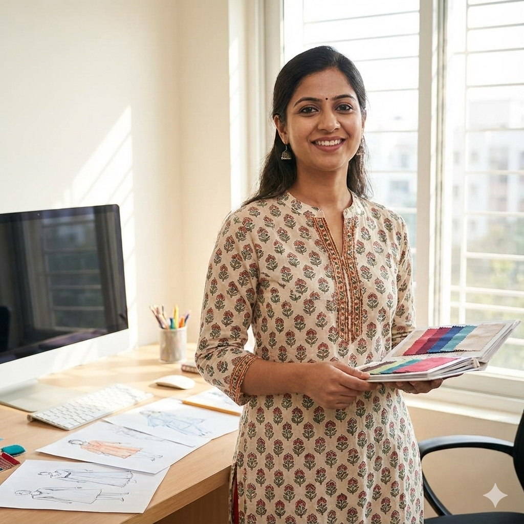 Swati ensures that every thread and print meets our gold standard. With an uncompromising eye for detail, she oversees the entire production cycle—from fabric sourcing to the final packaging.